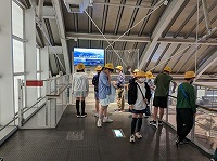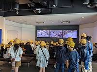 現在、野島断層保存館内を見学しています。 子どもたちは、班ごとにまとまって行動しています。 断層を見て、地震の恐ろしさをあらためて感じました。操作しながら断層のずれを理解したり、 シアターで震災の被害を学んだりしました。子どもたちは、「地震って怖い」と口にしていました。 次は、淡路ファームパークイングランドの丘へ向けて移動します。