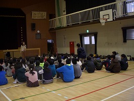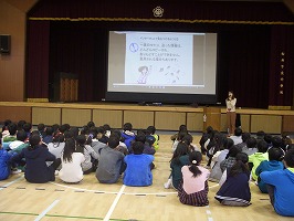 すでに携帯電話を持っていたり、これから携帯電話を使ったりする年齢の児童にとって、貴重な時間となりました。個人情報を流出しない、メールで知り合った人と会わない、など最近の携帯電話を使ったトラブルの話をふまえた話を聞きました。