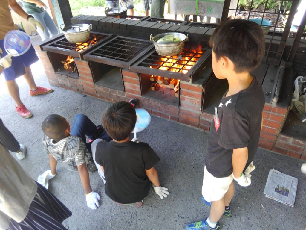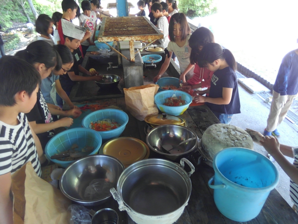 ここでは、カレー作りを行いました。野菜を切る・米を洗う・火をおこすなど、なかなか体験することができないことに取り組みました。