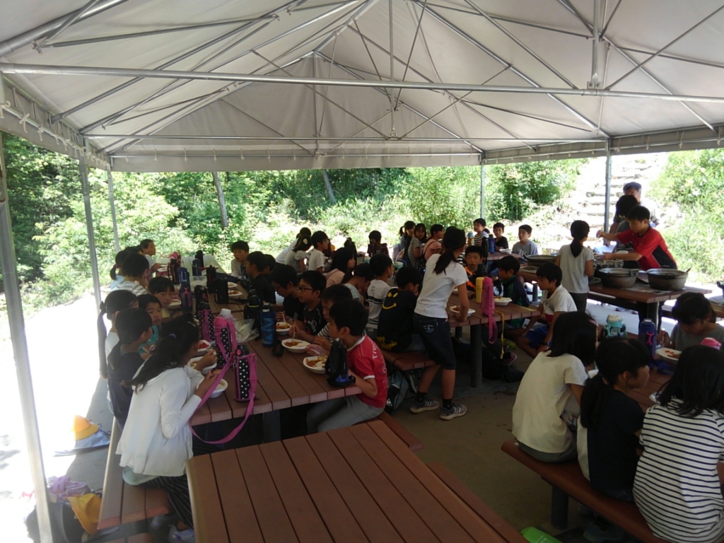 みんなで協力して作ったカレー、外で食べるカレーは一段とおいしく感じられたようです。後片付けもキレイにでき、施設の方からもお褒めの言葉をいただきました。