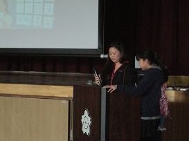 12月13日(金)児童朝礼にて国際理解クラブの児童が中心となって“Happy Time !”が行われました。 初めに本校が交流しているイギリスのWoodlands Primary Schoolに送る予定の各学年の作品を紹介しました。 次にWoodlands Primary Schoolの担当の先生から届いたEメールの紹介をしました。前回送った子どもたちの作品について、とても素晴らしいと感動してくれました。また国際理解クラブの人たちが質問したことについて次のように答えてくれました。