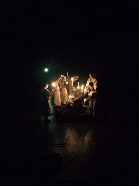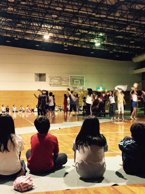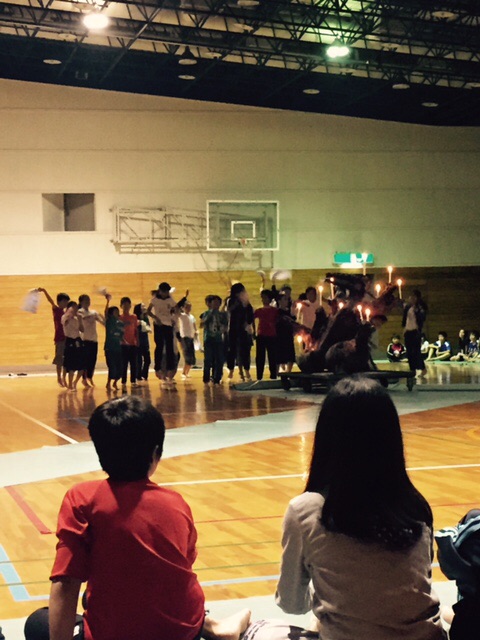 あいにくの天気で、予定されていたキャンプファイヤーができず、大ホールでキャンドルサービスをしました。