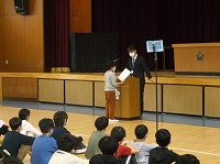 3月24日(金)令和4年度の修了式を5年生が体育館に入場し、他の学年がオンラインで視聴する方式で行いました。式では、各学年の代表者が修了証を受け取った後、校長より話を行いました。その後、担当の教職員から春休みの過ごし方の話を聞きました。春休みは、安全に十分留意し、4月7日の始業式には元気に登校して来てください。一年間ありがとうございました。
