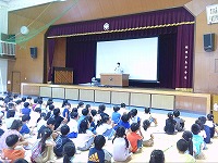 6月27日(火)全校朝礼を行いました。この日は校長の話に引き続いて、7月の生活目標「暑さに負けず生活しよう」についてと、特別支援教育の大切さについて担当の教職員から話をしました。暑い中でしたが、子どもたちはしっかり最後まで話を聞くことができました。