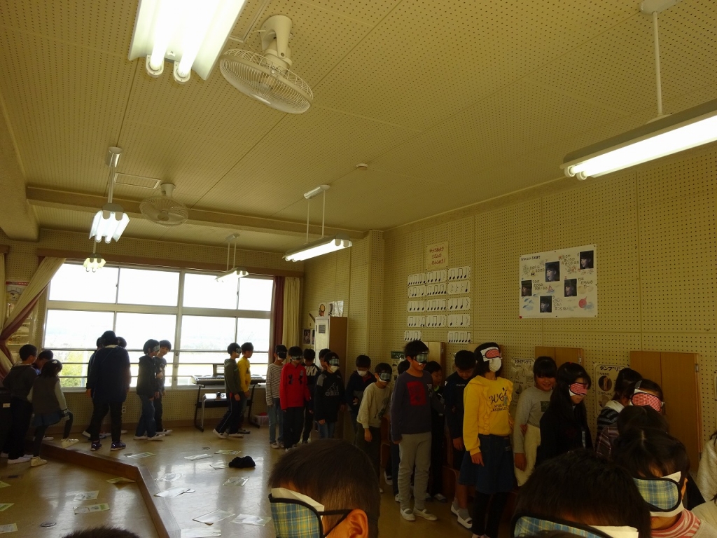 3、4校時は2クラスずつアイマスク体験を行いました。