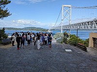 渦潮の見学先の近くに素敵な場所がありましたので、クラスごとに写真を撮りました。 写真を撮るのも楽しそうです。どんな写真が撮れたか、届く日が楽しみです。 子どもたちは、元気に過ごしています。今度こそ、ホテルへ向けて出発です。