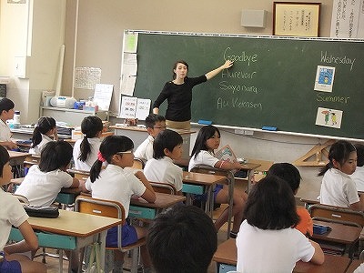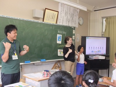 本日ALTのナターシャが来校し、4年生の外国語活動を行いました。