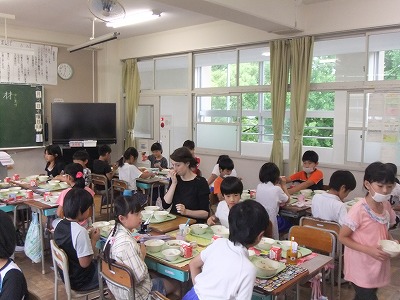 みました。「八宝菜も焼売もとてもおいしかった。今日に限らず、日本の給食はすごくヘルシーでおいしくて大好きです。ご飯はカナダで小さいころよく食べていたので前から好きだったけど、日本のお米は少し粘り気があって、カナダのよりとてもおいしいです。」と言っておられました。