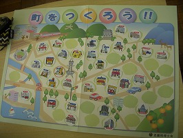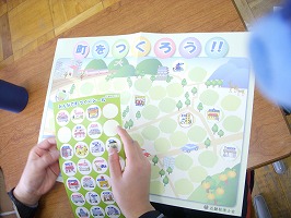 次に、自分の住みたい町をシールを使って作ってみました。自分の家の周りに、ゲームセンターがあって、コンビニがあって、レストランがあってと楽しそうな町を作っていました。警察は、自宅から遠い所に配置している子も・・・。