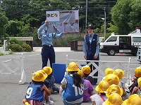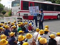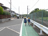 田辺警察署の方とPTA活動部の方にご協力いただき、2年生も交通安全教室を実施しました。はじめに警察署の方から、歩道のない道路を歩くときや、道路を横断するときに注意することなどを教えていただき、その後実際に学校周辺をペアで歩きました。道路を横断する前に止まることが難しく、左右確認をしながら道路に出てしまうこともありましたが、その都度声をかけてもらうことで、教えていただいたことを思い出し、確認しながら歩くことができました。