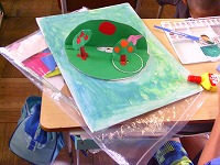 3年生が図画工作科「くるくるランド」の学習で、工作をしています。台紙の上で円盤状の用紙がくるくる回るのを利用して、子どもたちは様々なアイデアを出していました。野球盤や回転ずしなど、いろいろな作品が登場して大変楽しい学習となりました。