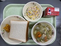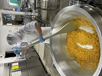 1月の給食には「まるごとみかんジャム」が登場しました。みかんとレモン果汁と砂糖をじっくり1時間ほどかけて煮詰めて作っていきます。はじめはサラサラだったみかんが、トロトロになりおいしく出来上がりました。この日は食パンの献立だったので、子どもたちは食パンに塗って、おいしくいただきました。