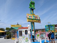 乗り物チケットの枚数を確認しながら、班で話し合って決めた乗り物に乗っています。ONOKOR Oに到着してから、ずっといい天気なので、子どもたちは園内を走り回って思う存分楽しんでい ます。 メリーゴーランドやブロックホッパー、フロッグスイングなどのアトラクションで満喫してい る子どもたちに出会いました。学年で決めた約束を守って、行動しています。