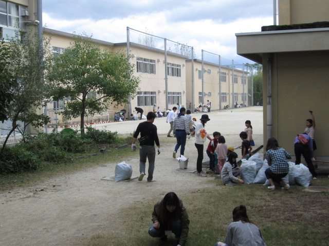 4時間目には、保護者のみなさまにもご協力をいただき、校内の美化作業を行いました。天候が心配されましたが、無事に外の掃除も実施することができました。