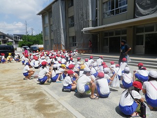 学校で集合し、お話を聞いて、いざ出発です。