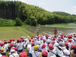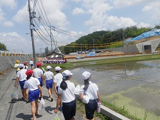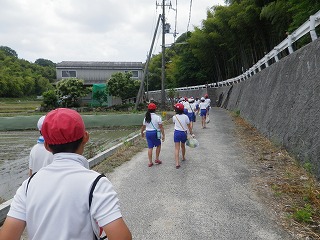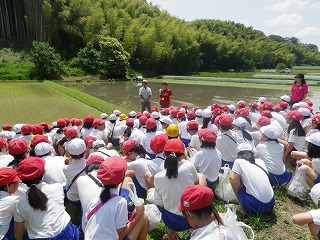 校区内を歩いて、地域の田んぼに到着。
