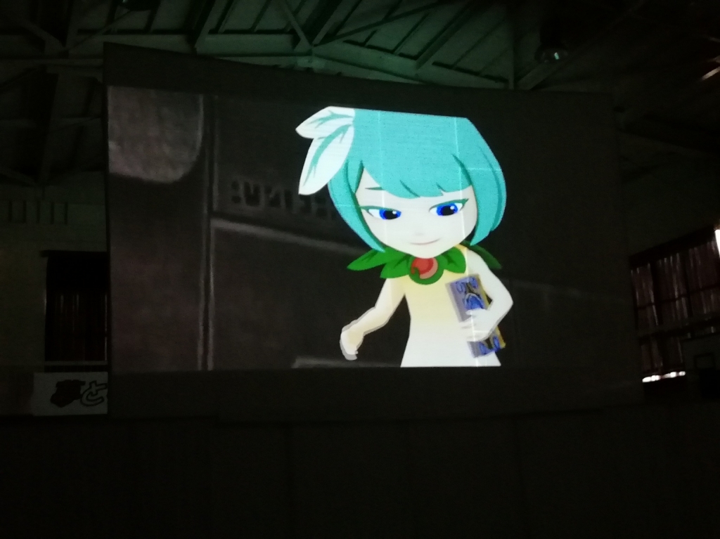 プロジェクション・マッピングを用いた迫力ある演出あり、映像から飛び出してきた役者のみなさまの素晴らしい歌声や楽しいやりとりで笑いありで、約1時間の劇に子どもたちはくぎ付けとなりました。 またご家庭でもお話を聞いてあげてください。