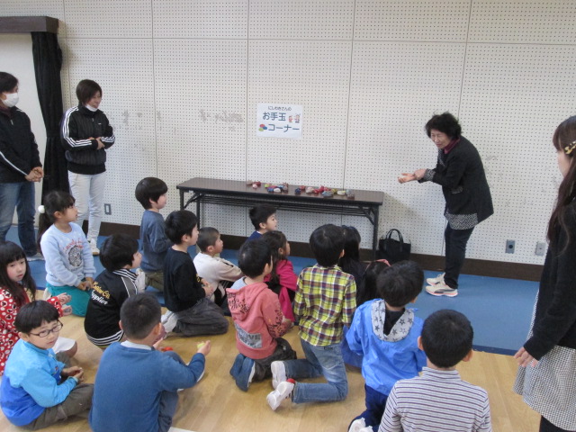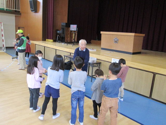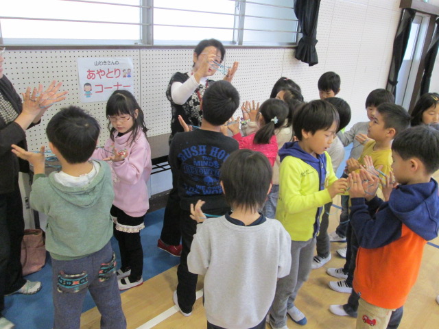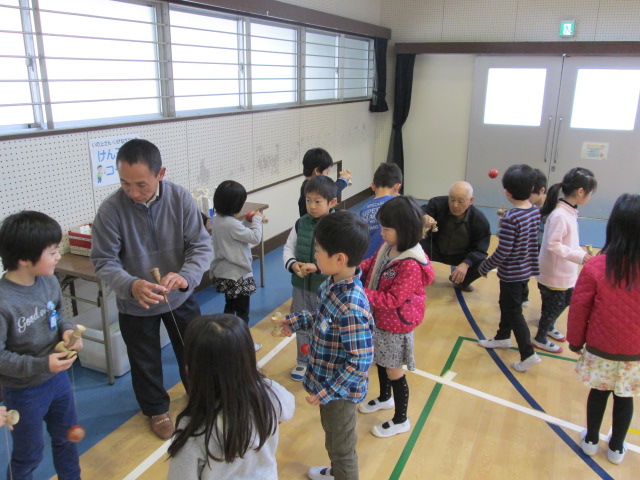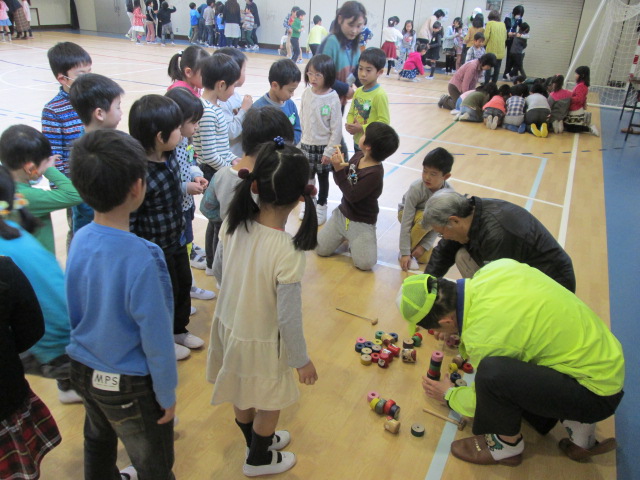 今日は、1年生の昔遊び体験がありました。本日の先生は、いつも登下校を見守って頂いている地域のボランティアの方々です。 子ども達は、小グループに分かれて、8つの遊び(けん玉折り紙、だるま落とし、お手玉、めんこ、おはじき、あやとり、こま)を体験しました。 短時間でしたが、子ども達は熱心に、一生懸命「遊んで」いました。この時間、体育館は楽しい笑い声に包まれていました。ご協力いただいたボランティアの方々、お世話になり,ありがとうございました。