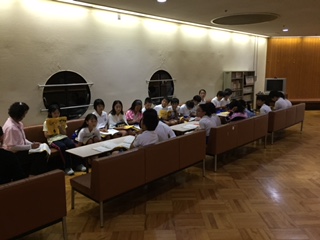 お風呂で汗を流した後、1日目の活動について、各自しおりに記入しました。