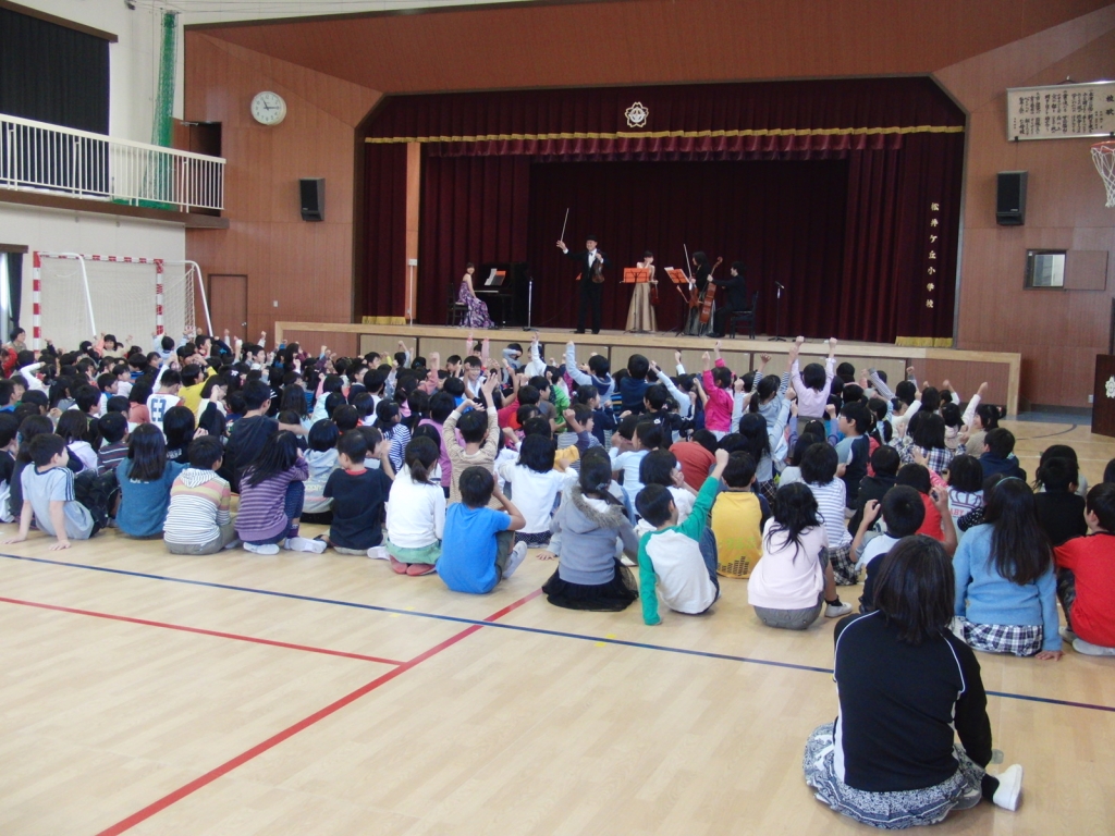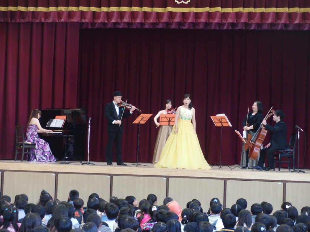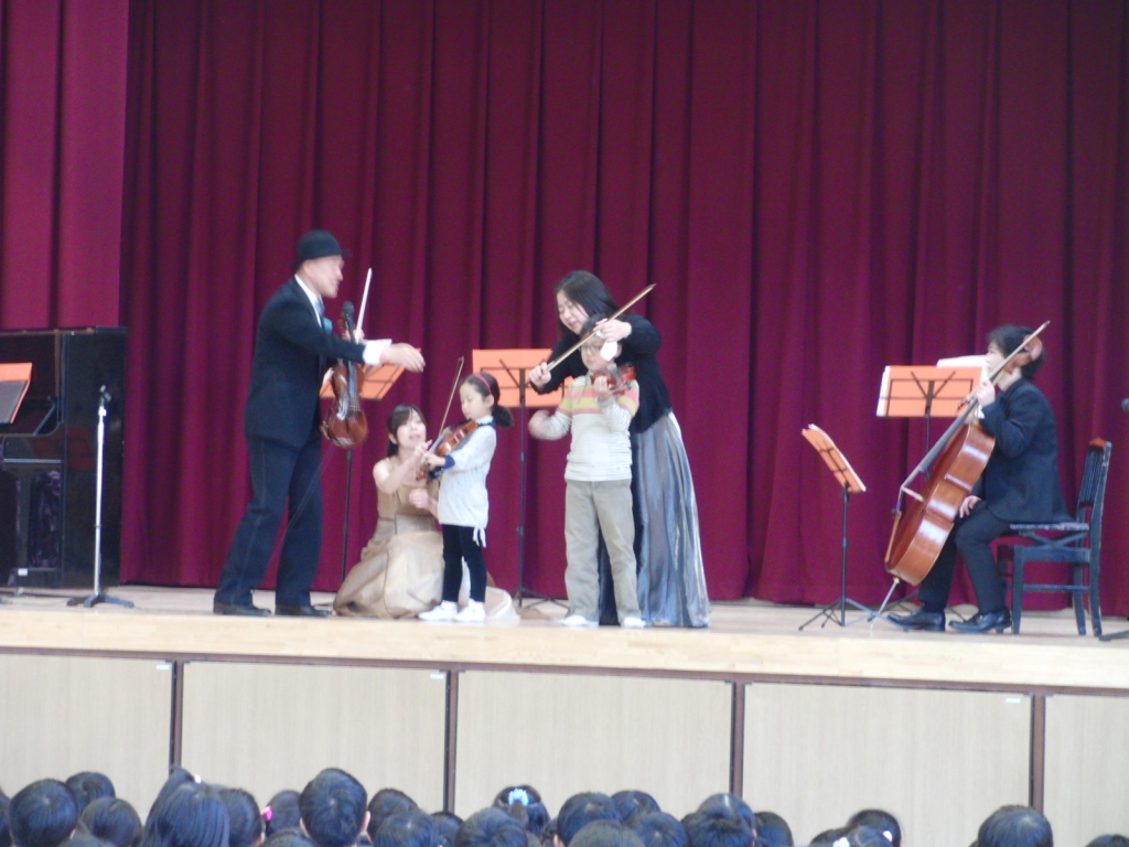 本日は、文化鑑賞会。プロの演奏家たちにきていただき、弦楽4重奏を演奏してもらいました。