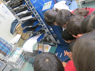 朝日新聞では、雨の日、新聞を袋に入れるのを体験させていただきました。