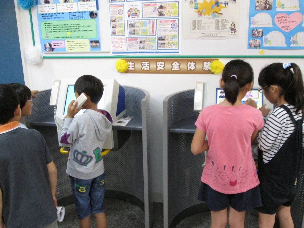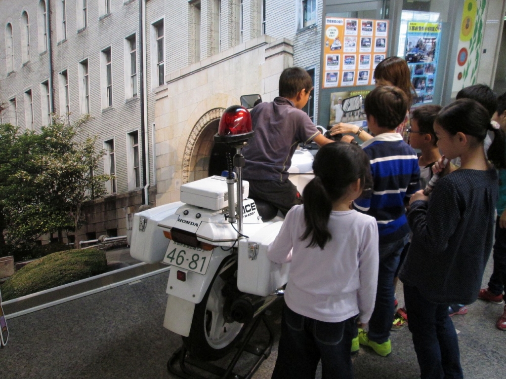 体験コーナーでは、白バイにまたいだり、110番通報を体験したりするなど、日頃はなかなか体験できないことに目を輝かせながら学習する姿がみられました。