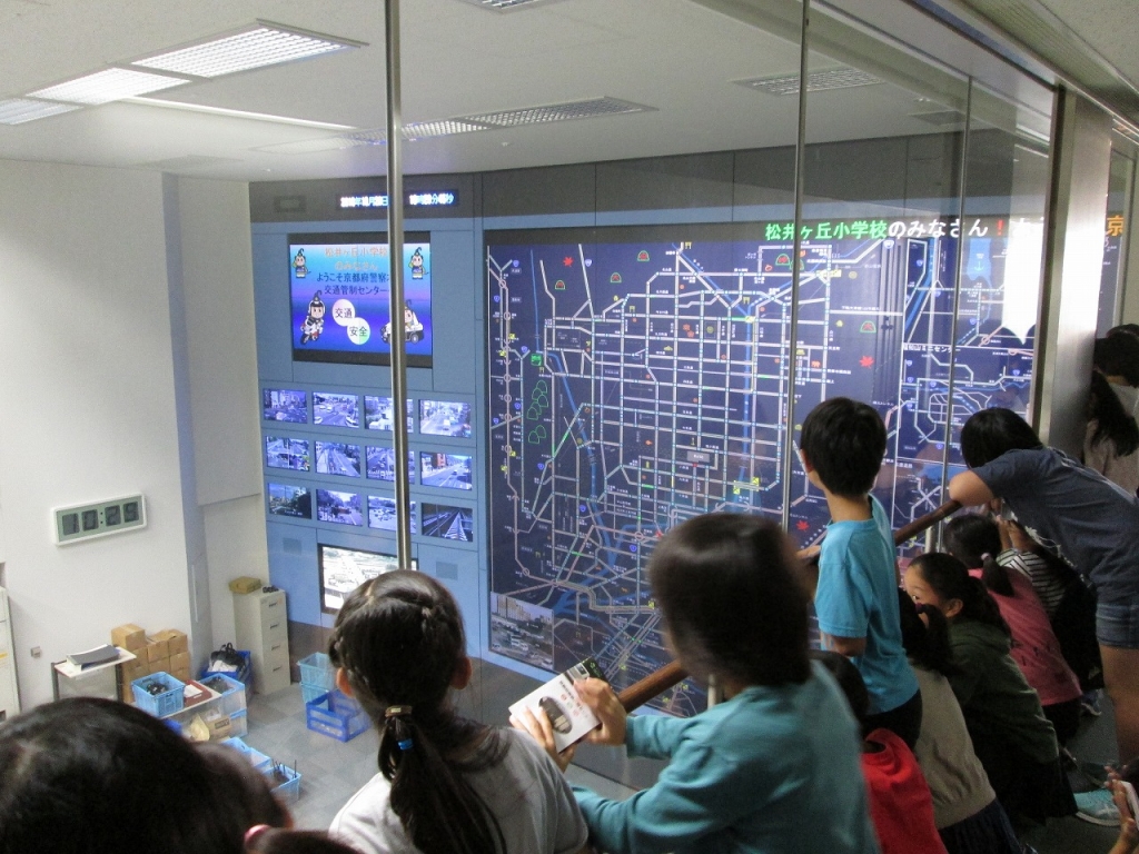 また、交通管制センターの見学では、主要な交差点の今の映像が映し出されていたり、渋滞情報が大きな画面でわかったりすることに驚いていました。