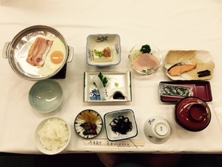 体操後移動して、朝食を食べました。あおさや海苔、海の幸いっぱいのメニューです。