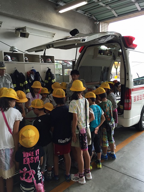 4年生は消防署(京田辺市消防署北部分署)見学に行ってきました。