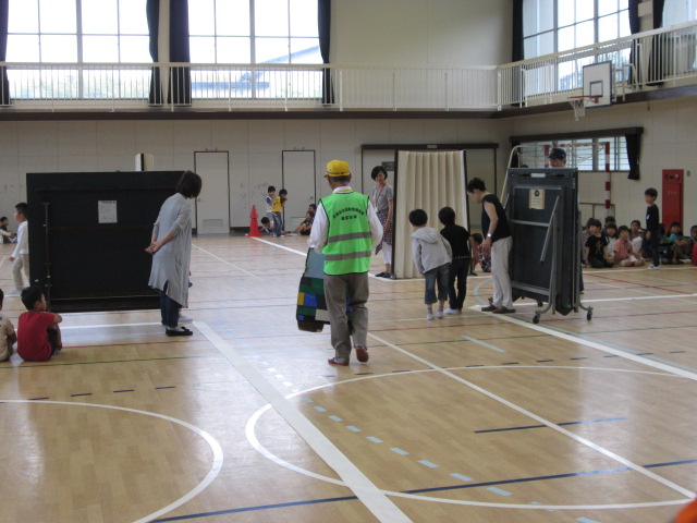 1年生は、体育館に模擬道路をつくり、道路の歩き方・横断歩道の渡り方・安全確認の方法について学習しました。