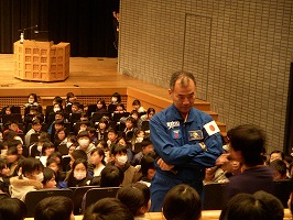 本日の午後、6年生は、同志社女子大学にある新島記念講堂に行きました。京田辺市内の小学6年生が参加し、宇宙飛行士の野口聡一さんの話を聞きました。 宇宙での出来事や地球に帰ってきてからのことを紹介してくれました。「ご飯を食べる時に、よそ見をしているとスプーンが空気の流れで移動してしまう。」「無重力の中でしばらく生活していると、地球に戻ってきてからまつげの重さを感じる」など楽しい話が多かったです。