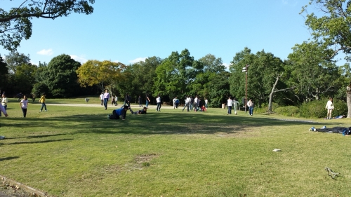 ひと息入れたのもつかの間、またまた、芝生の上で遊んでいます。子どもは元気です。