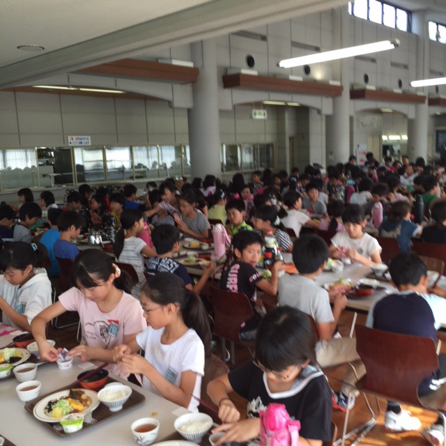 朝食の時間です。子どもたちは、今日の活動に備えて、朝ごはんをしっかり食べていました。