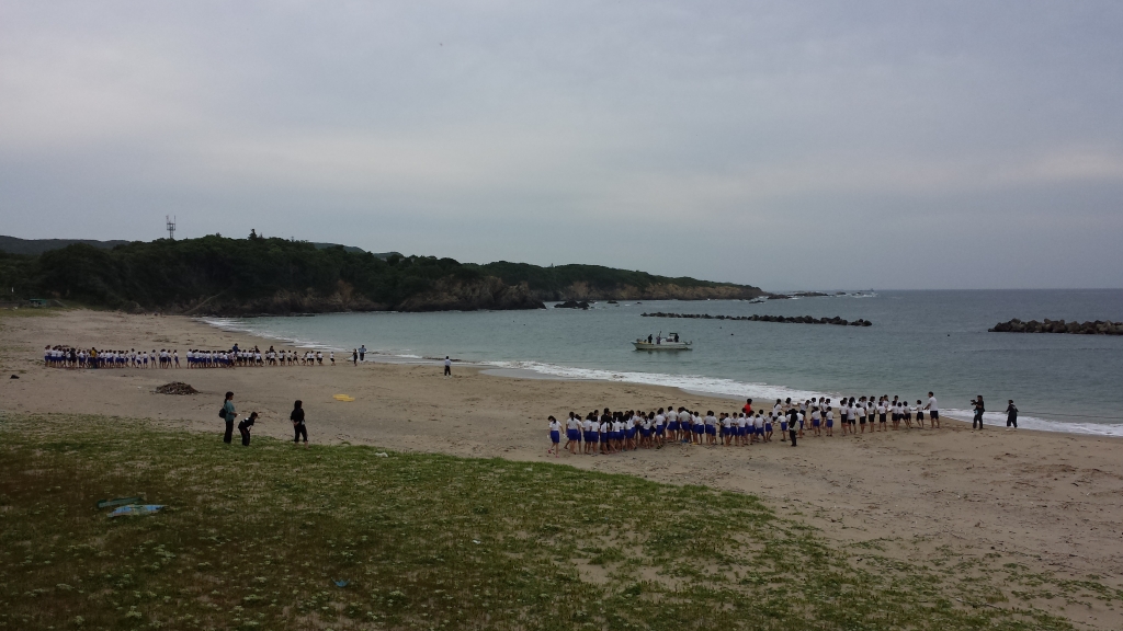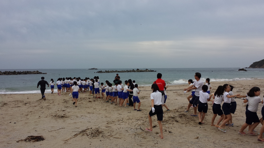 少し波が高い中、地曳網体験をしました。