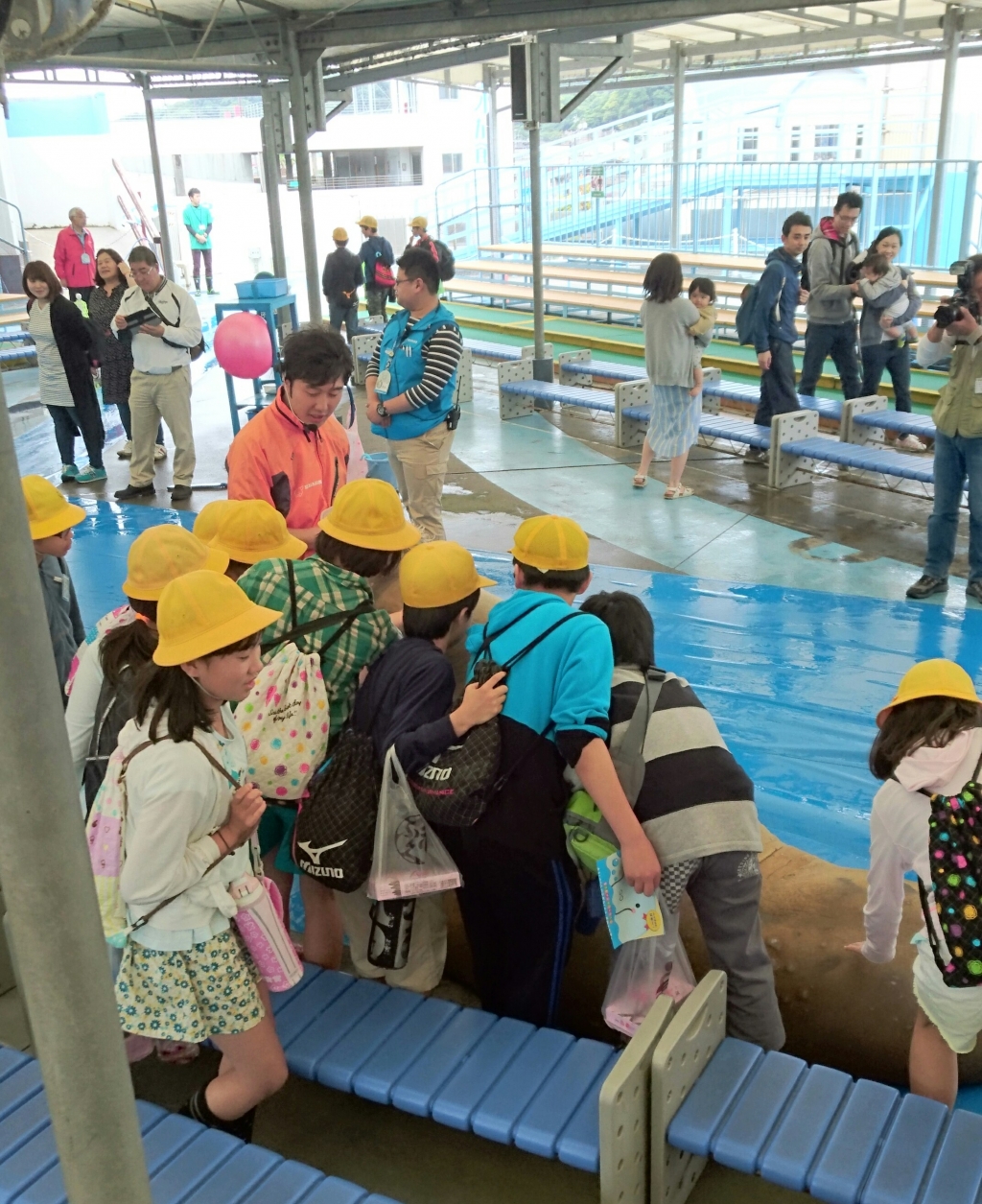 たくさんの子どもたちが楽しんで見ています。【修学旅行】
