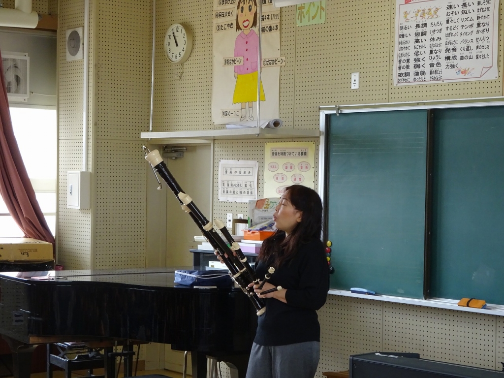 みんなが持っているソプラノリコーダーだけでなく、様々な種類のリコーダーを見せていただき、構え方や吹き方などの扱い方を教えていただきました。