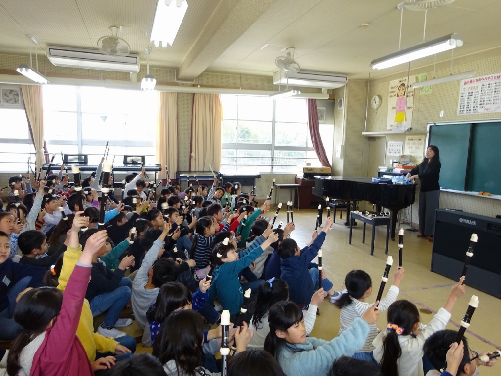 3年生から始めるリコーダーの学習のスタートに、講師の先生をお呼びしてリコーダー講習会を行いました。