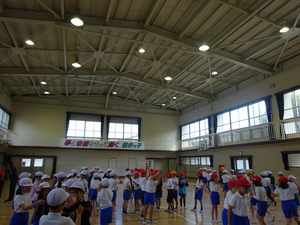 その後、学年開きでは、担任紹介や学年目標についての話のあと、クラス対抗並び替えゲームをしました。