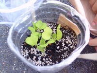 2年生の子どもたちが生活科の学習でダイコンのタネをまき、発芽して成長する様子を観察しました。子どもたちは、各自のペットボトルで発芽している様子をつぶさに調べ、本葉がどのように大きくなるか観察しました。今後もしっかり水やりを行い、成長する様子を見ていく予定です。