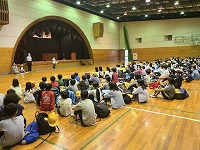 ウォークラリーとレクを無事に終え、予定より少し早く夕べのつどいを行い、青年の城の方からシーツやお風呂の使い方を教えていただきました。