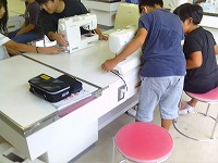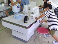 5年生が家庭科の学習で、ミシンを使ってエプロン作りを始めています。子どもたちはミシンの取り扱い方を教えてもらい、一つ一つ手順を確認しながら作業を行いました。糸がどこから出てくるかなど知らないことが多く、初めて使うミシンに戸惑いながらも、真剣な表情で学習に取り組んでいました。