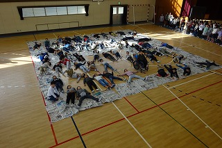 実際に体育館に新聞紙を敷き詰めて、体感しました。