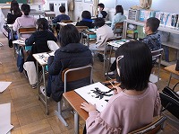 1月11日(水)新年の初めに4年生では書き初めを行いました。4年生は「美しい空」という文字を丁寧に筆で書きます。特に「美」や「空」の漢字と「し」「い」のひらがなの文字の大きさに気を付けながら一生懸命書きました。