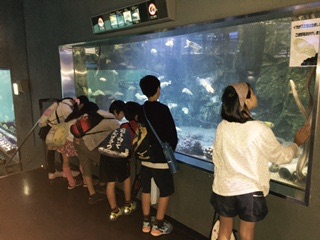楽しみにしていた水族館。まず、担任の先生から、班行動の約束や昼食時間、集合時間についての確認が行われました。
