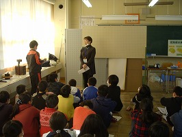 子ども達は、社会科の学習で、近年核家族が増加していることや、高齢者福祉事業について学習してきました。学習する前は、「認知症って何だろう。」と思っていた子ども達が多かったようです。認知症とは、「覚えられなかったり、忘れやすかったりすることが多いのだよ。」という話をしても、「僕たちもよく忘れるけど、それと何が違うの。」と、理解しにくかったようです。しかし、今日の「認知症サポート養成講座」では、認知症とはどのようなもので、どんな病気かを、寸劇にしてもらうことで、「そういうことが認知症の症状なのだ。」と理解できたようです。