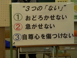 認知症とその家族の様子の劇を客観的に見ることで、気づかないうちにきつく当たってしまうことを学び、もう少し優しく接するようにしなければならないと気付いたようです。どこかで、今日の劇に出てきたような人と出会った時は、自尊感情(プライド)を傷つけないこと、急がせないこと、驚かさないことなど、今日、教えてもらったことを活かして関わってほしいと思います。