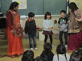 ☆1年生はサリーの着方を教えてもらったり、インドの歌を歌ってもらいました。