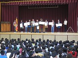 そして、綴喜駅伝、山城未来っ子駅伝の表彰を行いました。毎日練習を続け、力強く走り抜き、優勝という素晴らしい結果を得た駅伝選手の姿は、子ども達の大きな励みとなったのではないかと思います。