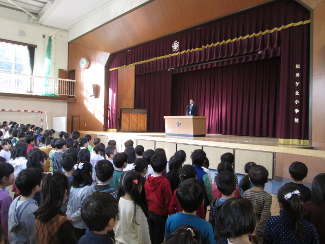 まず、初めに校長先生から、新年、新たな気持ちで、学校教育目標「夢と希望をもって輝く松井っ子」のように、夢や目標に向かってがんばってくださいというお話がありました。