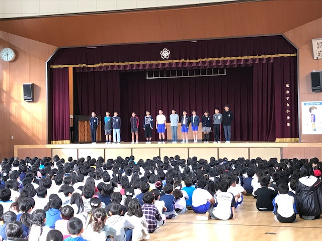 本日、児童朝礼がありました。後期委員会がスタートし、各委員会の委員長から、仕事内容等の紹介がありました。